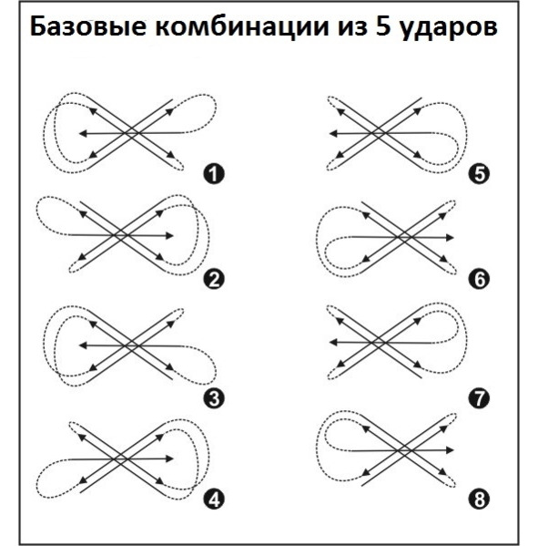 При изучении комбинаций ударов можно пользоваться любой из предложенных схем либо их сочетанием.