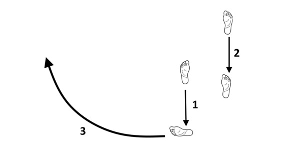 На начальном этапе допустимо выполнять отходы на максимальную дистанцию, но следует помнить, что это позволяет противнику продолжать свою атаку повторной атакой, наша же задача – максимально усложнить атакующему выполнение его действий. Поэтому уход назад на максимальную дистанцию следует изучать совместно с переходом к круговым передвижениям приставным шагом (рис. 15).
