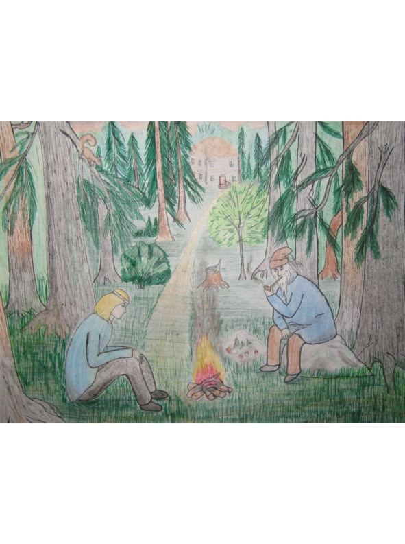 Наступал прохладный, тихий вечер. Этот обычный, осенний день не предвещал ничего особенного. Молодой парень медленно шёл домой по лесной тропинке, уставший и изнурённый после тяжёлого дня. У него были светлые волосы средней длины и цвета созревшей пшеницы. В его чистых голубых глазах можно было увидеть лишь простоту и здоровый закал. Движения его были легки и непринуждённы. Он двигался по направлению к дому, мечтая о чём-то своём. Над его головой парили чёрные птицы, и ветер ласково трепал его волосы. Но вдруг парень остановился. Ему как будто бы что-то послышалось. Какой-то странный звук исходил со стороны леса. Парень ненадолго решил не обращать внимания и идти дальше, но какая-то немыслимая сила заставила его повернуть и пойти вглубь леса. Его манил некий таинственный зов. Он шёл, постепенно ускоряя шаг. На его голову падали холодные капли с деревьев, кроны которых были покрыты в яркое позолото. Он шёл долго, прерывисто дыша. Его рассудок затуманила серая неизвестность и беспричинное желание идти вперёд. Даже лесная, прохладная свежесть опьяняла его. Под его ногами шуршали опавшие листья, а вдалеке с ветки на ветку ловко перепрыгивала белка. Вскоре парень вошёл на небольшое пространство, оцеплённое густыми елями. Это была отдельная земля, в середине которой рядом росли два мощных дуба. А прямо на верхушках между этих деревьев располагалась небольшая хижина из мастерски переплетённых ветвей и хвороста. Неожиданно из хижины раздался пронзительный, дикий крик и неистовые вопли. Это были отнюдь не человеческие звуки, а схожие со звериными, которые были настолько сильны, что даже доносились до окрестных деревень и пугали жителей близ лежащих сёл. Парня окутало любопытство, и он полез на деревья, чтобы узнать, что за существо так напугало его. Но стоило ему почти добраться до хижины, как внезапно оттуда вылетела девушка на метле. У неё были густые и длинные рыжие волосы, которые красиво развивались в потоке ветра. Её большие зелёные глаза были пронизаны волшебной красотой, взгляд её был сильным и всепроникающим. Парень сорвался с дерева, упал на землю и ударился головой об камень. Он потерял сознание и лежал на траве около часа возле серых камней. На его голове была открытая рана, из которой тонким потоком сочилась тёмно-алая кровь. Очнулся он в чаще леса. Возле него горел небольшой костёр. Языки пламени стремились ввысь, и горячий воздух поднимал вверх пепел, который исчезал в небе. У костра сидел странный дед, обросший волосами, который задумчиво глядел вникуда и курил трубку. Парень спросил у старика: «Где я? Что со мной случилось?» Но дед не ответил. Лишь с ухмылкой взглянул на растерявшегося парня, встал и медленно удалился, скрываясь в лесной чаще. Вскоре он вернулся, принёс парню повязку из лечебных трав и перевязал ему рану. Также он захватил с собой свёрток. Старик расстелил его на полянке возле костра. В нём находились грибы и лесные белые коренья. Дед накормил парня великолепным ужином и пустил его переночевать в свой старый дом, который располагался недалеко от догорающего костра, за кустами, в лесной чаще. Парень чувствовал себя усталым и ослабевшим. Он пытался заснуть. Лицо парня было бледное, а на груди его снисходил маленький серебряный крестик, подаренный ему ныне покойной матерью. Лес вошёл во власть ночи. Вся природа вок