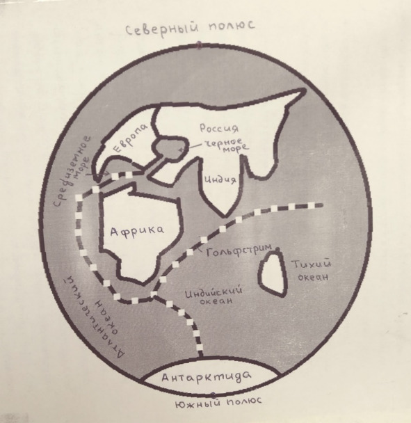Тогда капитан шутя предложил пингвинам добраться до России на большой льдине – айсберге. Таких айсбергов плавает вокруг Антарктиды очень много, потому что они и образуются изо льда, который толстым слоем покрывает всю поверхность Антарктиды. Пингвины не поняли, что капитан шутит, и сразу же решили сделать так, как он сказал. Они только попросили капитана, чтобы он показал им на карте путь, по которому они должны плыть. Капитан достал Атлас морей и океанов и нарисовал им карту, на которой обозначены моря, океаны, страны и морские течения и, конечно, указал кратчайший путь до России.