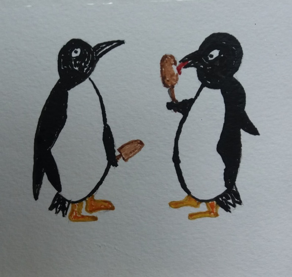Капитан извинился и сказал, что через год или два он снова будет в Антарктиде и привезет столько мороженого, чтобы хватило не только полярникам, но и пингвинам. Но этим двум пингвинам не хотелось ждать так долго. Они попросили капитана взять их на корабль, чтобы добраться до России, где очень много вкусного мороженого. Капитан согласился взять их с собой, но нужно было купить билеты. А, чтобы купить билеты, нужны паспорта и деньги, которых у пингвинов конечно не было.
