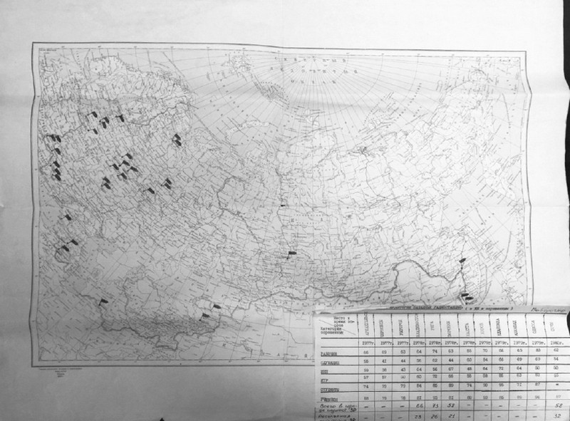 Представление о масштабах проведённых социологических исследований в определённые годы даёт, в частности, карта, висевшая в конференц-зале закрытого отдела.