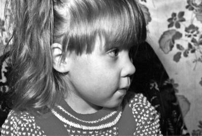 ! 1 марта 1994 г. Довольно длительное время сидела в неудобной позе в коляске, глядя в одну точку. Очень взрослое лицо.