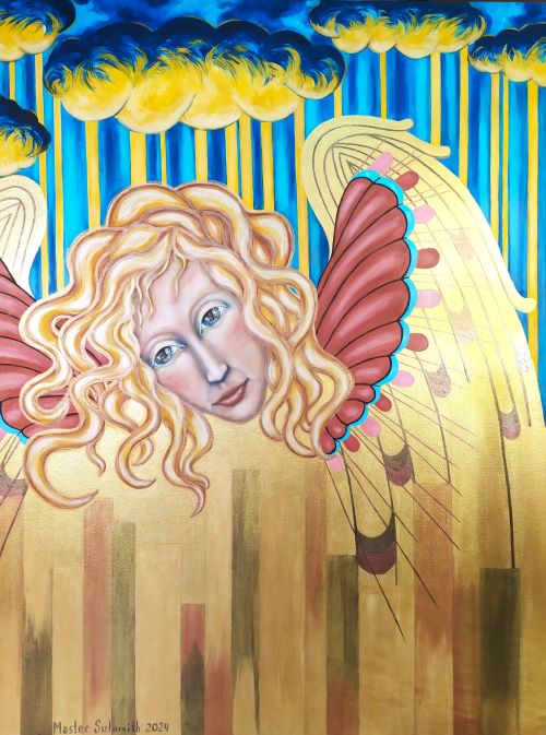 «Ангел-хранитель между небом и землей» Иванова С.Н. (Master Sulamith), 80х60, холст, масло, поталь, акрил, воск, 2024