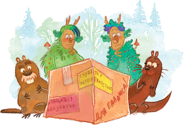 Выдра, бобр и лешие с ужасом уставились на посылку.