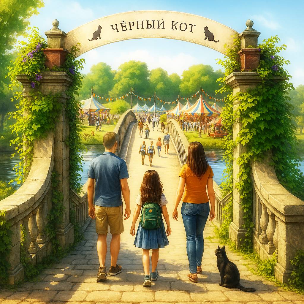 Солнечная летняя погода как нельзя лучше подходила для праздника на улице, особенно на природе. Традиционный День Храброго Кота было решено провести в самой старой части парка. Пройти туда можно только по широкому и увитому плющом каменному мосту над водоёмом. Над мостом уже растянули праздничный баннер и дополнительно украсили всё вокруг цветами и яркими флажками.