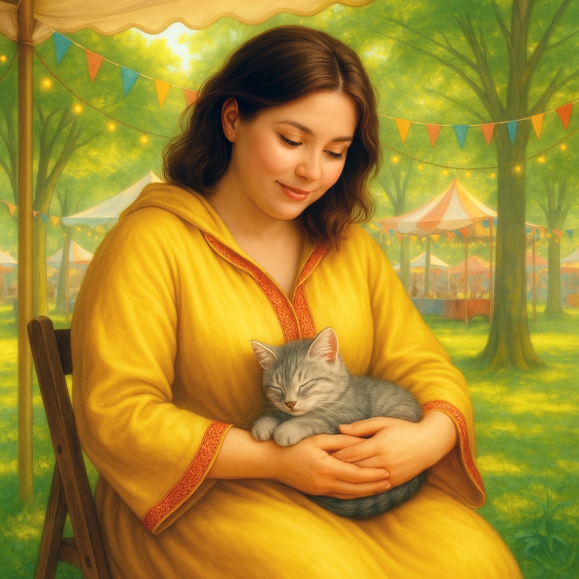 Лии показалось, будто они переглянулись и подмигнули друг другу. Чего только не привидится в ярких бликах солнца! Девочка наклонилась, ещё раз погладила кота на прощание и направилась к шатрам с животными, чтобы выбрать питомца для старика Алто. Везде толпились люди, тоже выбирая себе питомцев. Одна семья как раз уходила со счастливым ребёнком, державшим в руках белый мяукающий комочек. Лия решила подойти к самому дальнему шатру, в котором было меньше всего людей. Невысокая полноватая женщина сидела на табурете и ласково поглаживала серого котёнка.