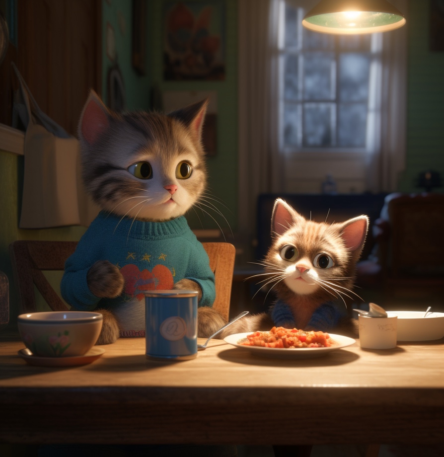 – Ну почему же, малыш? У вас будет завтрак, обед, полдник и ужин. Вместе с остальными котятами вы будете мастерить поделки, разучивать стихи и песни, учиться читать и писать и много играть. А вечером я освобожусь и сразу же приду за тобой после работы.