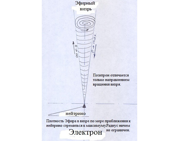 Рис 2.Электрон. Представляет собой частицу-нейтрино с вихрем Эфира, который есть гравитационное поле этой частицы