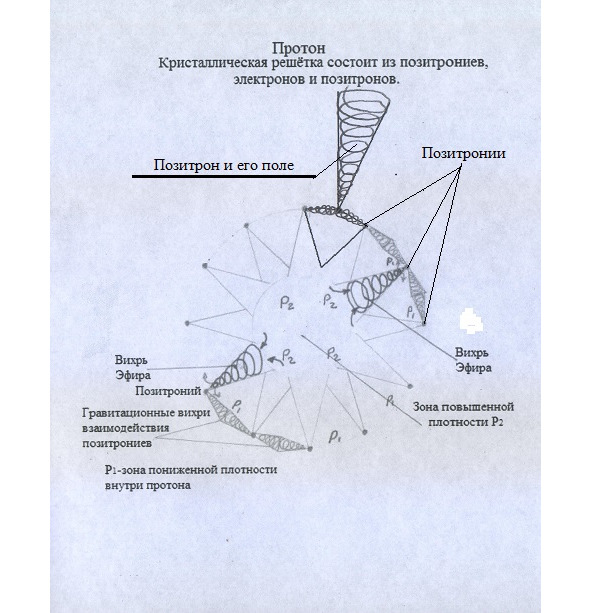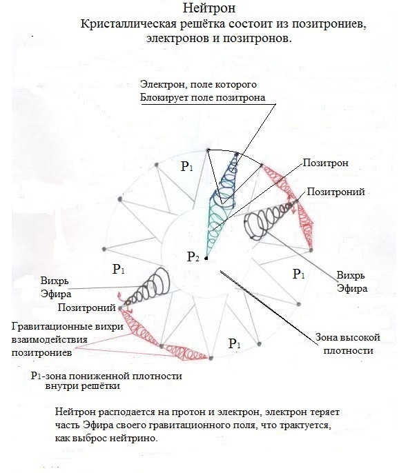 Протон в конечном итоге выглядит так: Рис.6. У нейтрона Рис.7 позитрон находится в центре и его гравитационное поле нейтрализуется полем электрона. Примерно так:
