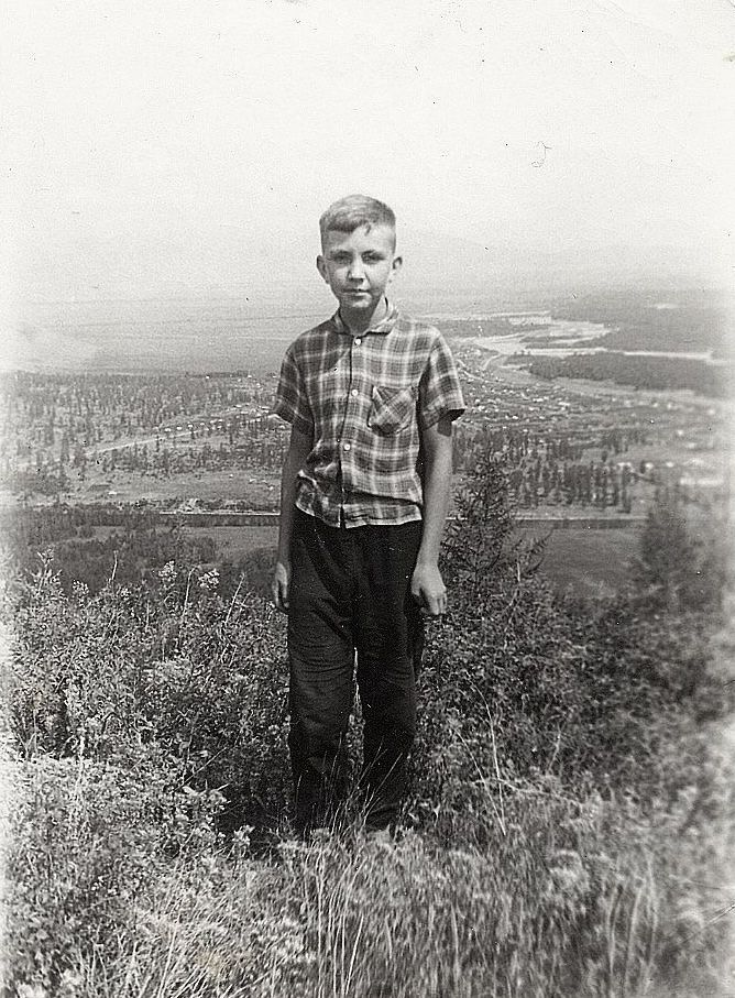 А вокруг – зеленые горы, а вдали – горы в снежных шапках: белки… Впервые на одну из ближайших гор я забрался тогда, в 1964-м, вместе с одним из многочисленных родственников, троюродным братом. Вот, я стою на фотографии, сделанной им: за мной, внизу – районный центр Усть-Кокса, а в долине сливаются реки, зеленая – Кокса, и голубая (белая!) – Катунь. И синее небо… Цвета я запомнил с тех времен – а фотография, разумеется, черно-белая.