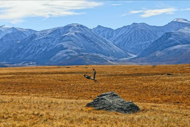 Река – хоть и быстрая, горная, но текла уже по степи. Вообще Тува мне запомнилась не горами, а степями: едешь по дороге, на автобусе, а вокруг степи и степи – горы где-то далеко-далеко…