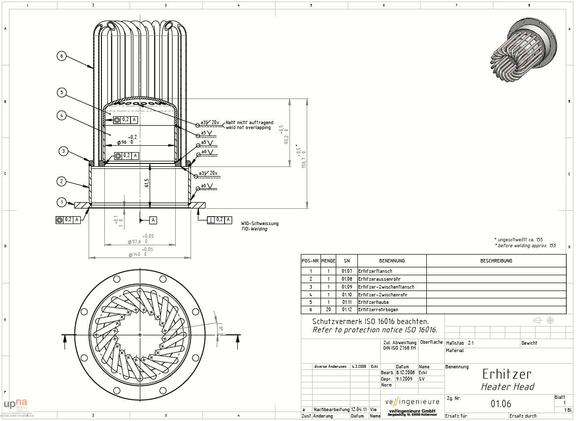 Нагревательная головка с 20-ю нагревательными трубками 8-ми мм диаметра: