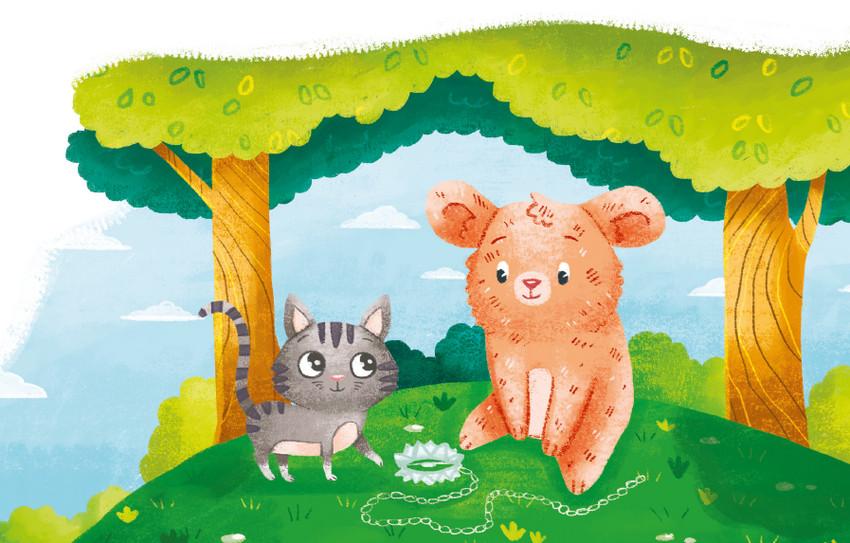 Вдруг, откуда ни возьмись, появился на полянке Котёнок. Он подбежал к Медвежонку, лизнул его в нос и сказал: