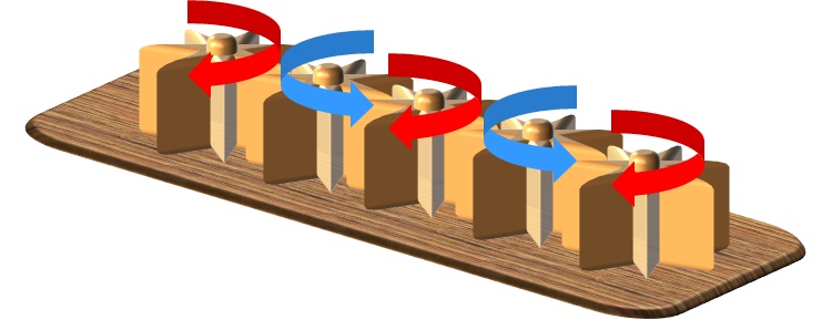 А теперь представьте, что есть доска, на которой закреплены несколько вертушек. При чём настолько близко, что их лопасти перекрывают друг друга.