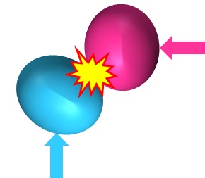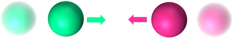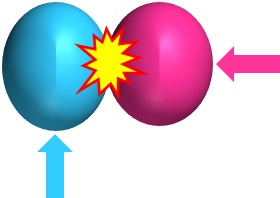 Так давайте, подумаем… Но, для начала, посмотрим воздействие частичек друг на друга… Представьте две частички воздуха летят навстречу друг другу. Поскольку частицы воздуха достаточно упругие, то мы можем их представить их как мячики.