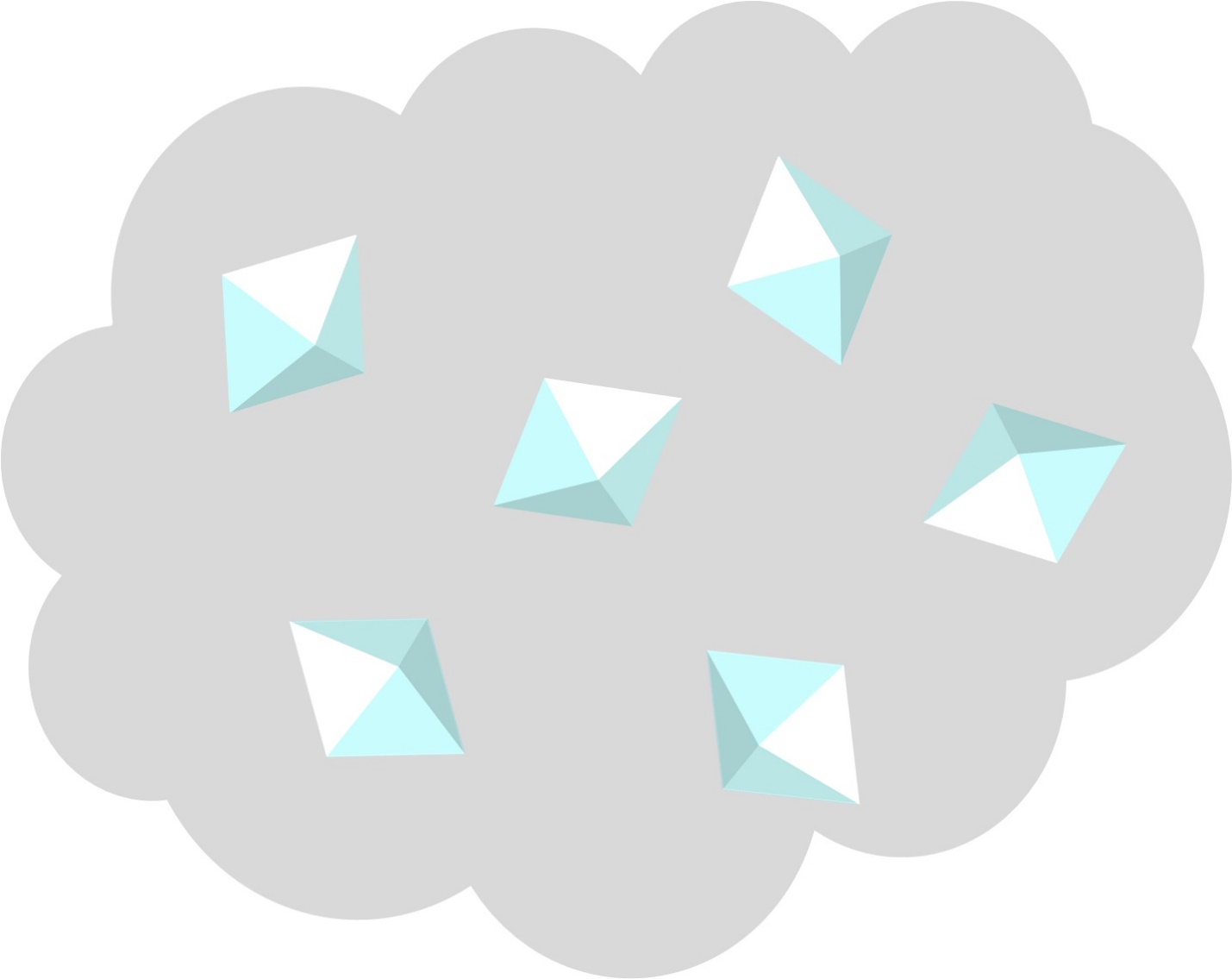 Воду мы обычно представляем в жидком состоянии. Также мы видим в небе облака. Облака ─ это скопление пара, того самого, который улетает из горячего чая. В воздушном состоянии водяные частички очень упругие потому, что грани-лепесточки их внешней оболочки натянуты как батуты и при столкновении отскакивают друг от друга. Поэтому в воздушном состоянии частички находятся друг от друга на большом расстоянии.