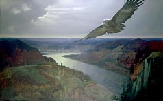 Он принял за исходный принцип творчества мироотношение народа. Художник ступил на путь мифотворчества в поисках героя, способного служить делу внутреннего преображения людей; искал в мифологии русского и соседних народов гармонического, идеального человека, а найденные и глубоко осмысленные художественные образы смело выражал в новых формах, создавая глубоко символические полотна.