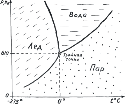Рис. 9. Диаграмма состояния воды вокруг тройной точки