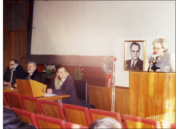 Заседание научно-технического Совета НИИ «Квант», посвящённое памяти И. В. Кудрявцева. Выступает дочь – Наталья Ивановна Кудрявцева. Киев, 2 марта 2005 г.
