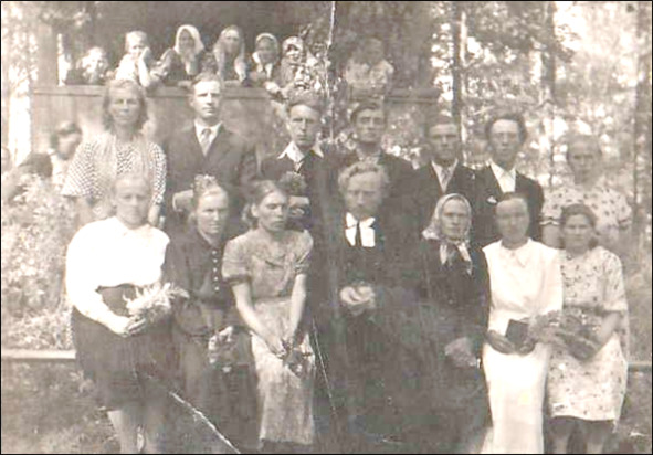 На кладбище в Домкино. Вторая справа в первом ряду Миральда Валге. Фото ок. 1950 г.