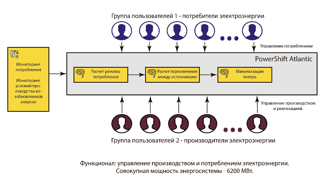 У энергии, получаемой от ветра и волн есть существенный недостаток – непрогнозируемые объемы производства в единицу времени. Использование накопительных аккумуляторов позволяет решить проблему только частично, поскольку часть выработанной избыточно электроэнергии не всегда удается оперативно реализовать. Более полное и интересное решение было найдено на стороне потребителей. С помощью подключенных датчиков расхода электроэнергии цифровая платформа PowerShift Atlantic анализирует режим потребления всех домохозяйств и промышленных предприятий, строит долгосрочные прогнозы и формирует индивидуальные тарифные планы (Рис. 11). Если потребитель доверяет «знаниям» платформы, он может выбрать гибкий режим контроля подаваемой мощности, учитывающий его индивидуальные особенности. Если он опасается, что мощности может в какой-то момент не хватить, и готов переплачивать за лишнюю энергию – он имеет и такую возможность. В результате платформа в автоматическом режиме управляет всей энергетической системой, заранее подключая, если нужно, дополнительные источники выработки электроэнергии на базе тепловых генераторов. Результатом работы платформы стала максимальная возможная экономия средств и природных ресурсов при выработке электроэнергии и практически полный переход на возобновляемые источники.