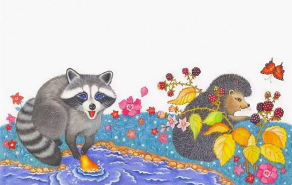 Прозвали его так, потому что не так давно на краю оврага рос огромный дуб, и этот дуб был, настолько стар, что с его кроны падали скрученные от старости куски коры, и вот однажды такой кусочек коры упал нашему еноту на нос. И что вы думаете, другой бы спрятался и не вылезал бы из норы, так нет, наш енот побежал и стал хвастаться, и в разговоре всегда и везде упоминал эту историю жителям близлежащей поляны, о которой я вам расскажу, наш енот получил своё прозвище Корка. Енот Корка выполз из своей норы, которая находилась в овраге чуть выше ручейка, протекающего по дну оврага, опасности в весенних разливах не было, так как овраг был достаточно широк, поэтому ещё его дед вырыл нору именно в этом месте. У Корки сегодня был очень трудный день, он собирался проведать своего старого друга ёжика. Он собрал в кулёк свежей земляники, малины и грибочков, которых так любит Ёжик, соберу по дорожке, подумал он, выйдя по извилистой дорожке вверх по оврагу, по которой он ходил много раз насобирал грибочков вблизи ельника и одиноко стоящих берёз, он подошёл к опушке у края леса, это было любимое место Ёжика. Он устраивал здесь себе лежанку укутавшись в листья и тоненькие от берёзы веточки, спрятав свой любопытный носик, мечтал стать капитаном большой лодки, которую он видел на большой реке когда был маленький, и как он в белой бескозырке управляет лодкой плывущей по серо-голубой глади. Все эти мысли наводили на его душу трепетное состояние и он знал, что если о чём-то мечтать, тогда мечты обязательно сбудутся. Корка сразу не заметил Ёжика, поэтому решил громко позвать его. – Ёжик, где ты?. -Да здесь, здесь я, выползая из-под листьев, бормотал Ёжик. В своём домике он только зимовал, а в остальное время проводил на своей любимой горке, которая находилась на поляне у леса.