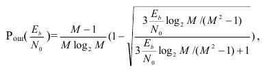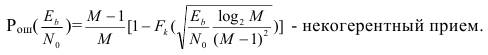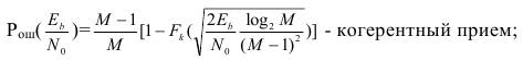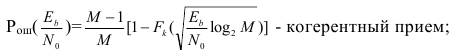 Для многоуровневой модуляции вероятность ошибочного приема будет определяться по формуле: