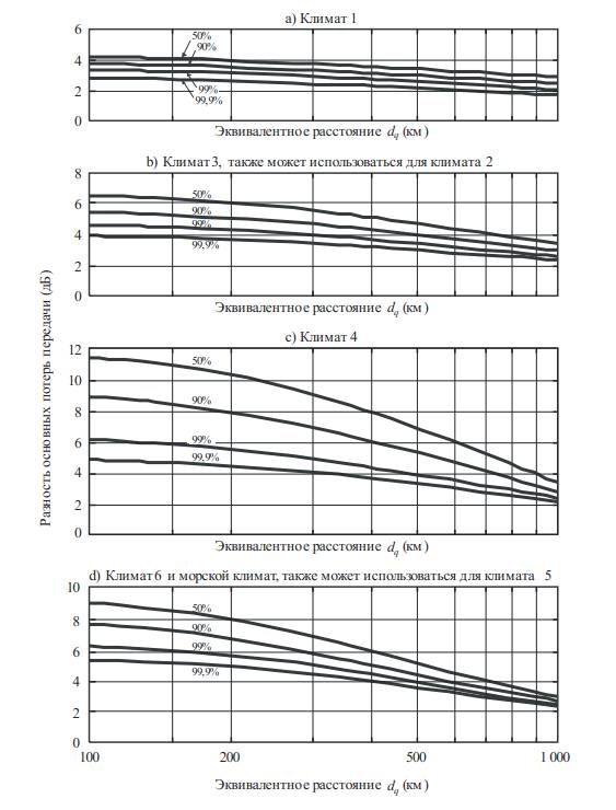 Рис. 19. Кривые разности между основными потерями передачи для наихудшего месяца и годовыми основными потерями передачи