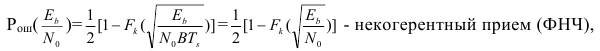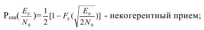 – вероятность битовой ошибки при когерентном и некогерентном приеме при заданном виде модуляции.