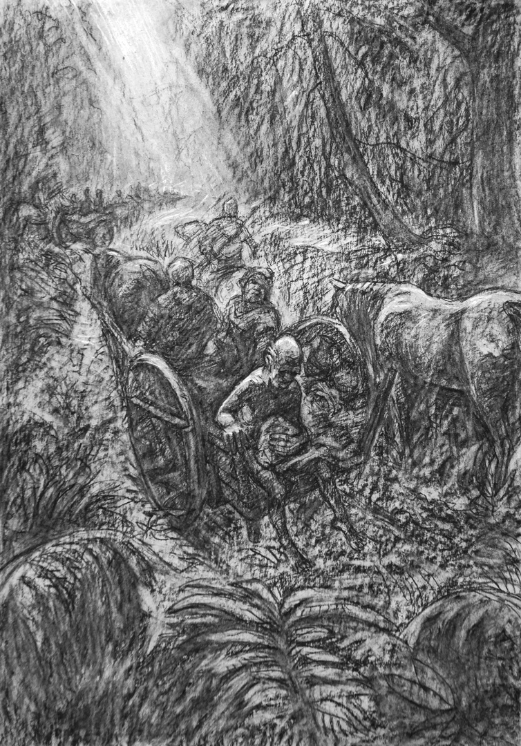 – Крутилка (так звали возничего), давай за мной! – предельно спокойно обратился к нему Роха, показал направление для движения обоза и сам поехал первым.