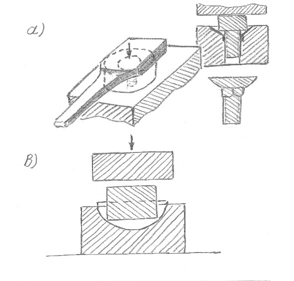 Пневмомолот (я имею ввиду 75 кг падающих частей), общим весом 3,5 т устанавливается на фундаменте, требующем от 1 куб м. до 2 куб м. бетона, в зависимости от грунта под ним. Простой литой монолит с четырьмя анкерами для крепления пневмомолота. Установка простая, главное: горизонтальная поверхность фундамента должна бать выверена по уровню и быть ровной, без выступов. Сразу предупреждаю: никаких прокладок между молотом и фундаментом не ставьте, они разобьются очень быстро, да и от отдачи по фундаменту шума будет больше. Без прокладок вся энергия отдачи будет уходить через фундамент в грунт. Поставили, притянули анкерными гайками с пластинами для шплинтовки, долили масла в насос. Проверили крепления бойков, совпадения их кромок. Подсоединили к сети энергоснабжения. Приступили к работе. Поработали 2—3 часа, подтянули гайки крепления, проработали еще 2—3 дня, ещё раз подтяните гайки и зашплинтуйте их пластинчатыми шайбами. На этом можно считать монтаж завершённым.