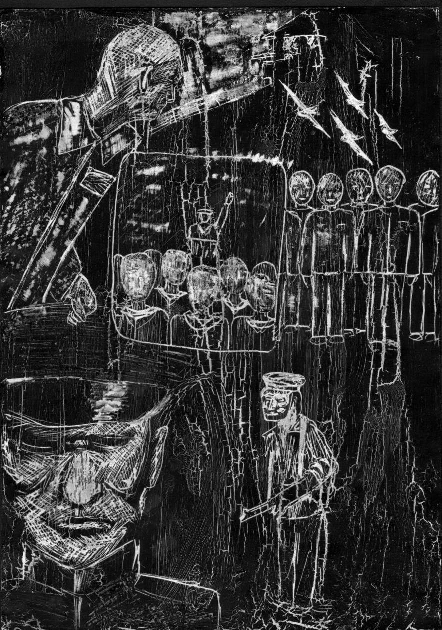 этих типов. За колючую проволоку, под автоматы на работу. Он