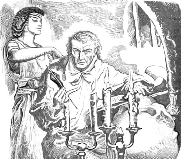 Незадолго до полуночи, в непроглядной тьме, Мот-Смерть оказался у коронков стен обреченного жилья. Протрубил серебренный рог, всего один раз и в ответ послышался отзвук многих тысяч труб и вновь наступила тишина. Люд чувствовал: здесь, совсем рядом, под коронками высоких стен крепости Пан Ти Капуи, собралось огромное Небесное Воинство. Клубился облаком их леденящий ветер. Всё поглотила тьма. Гасли последние огни. Наступало торжественное ожидание мистерии.