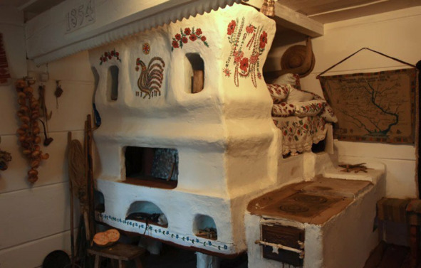 Глиняная печь крестьянского дома легко узнаваема по форме