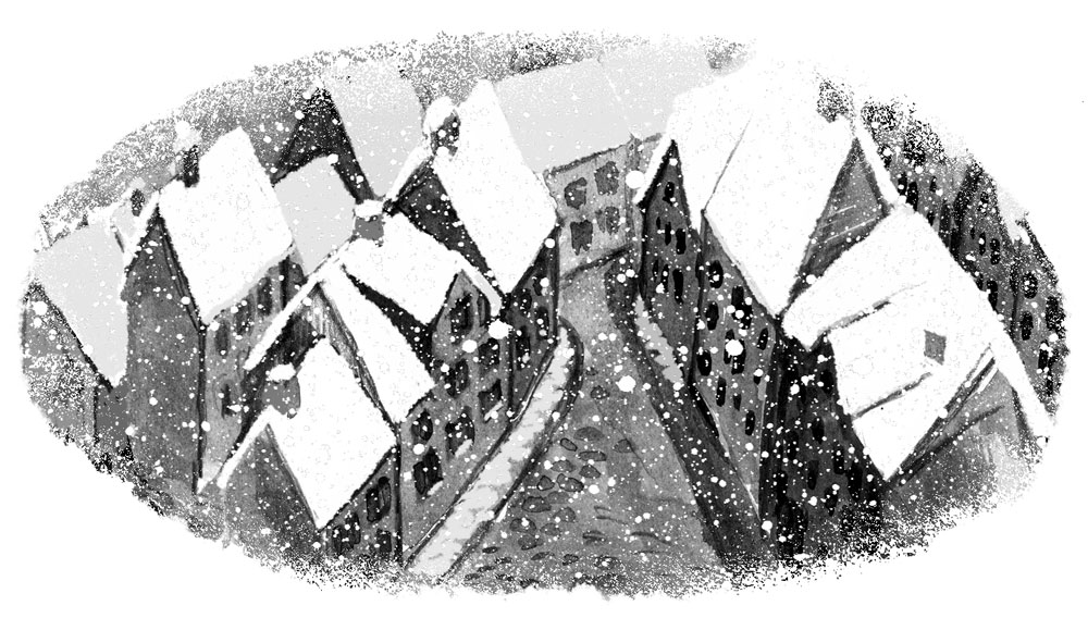 И вот девочка побрела дальше босая; ножонки её совсем покраснели и посинели от холода. В стареньком передничке у неё лежало несколько пачек серных спичек; одну пачку она держала в руке. За целый день никто не купил у неё ни спички; она не выручила ни гроша. Голодная, иззябшая, шла она всё дальше, дальше… Жалко было и взглянуть на бедняжку! Снежные хлопья падали на её прекрасные вьющиеся белокурые волосы, но она и не думала об этой красоте. Во всех окнах светились огоньки, по улицам пахло жареными гусями; сегодня ведь был канун Нового года – вот об этом она думала.