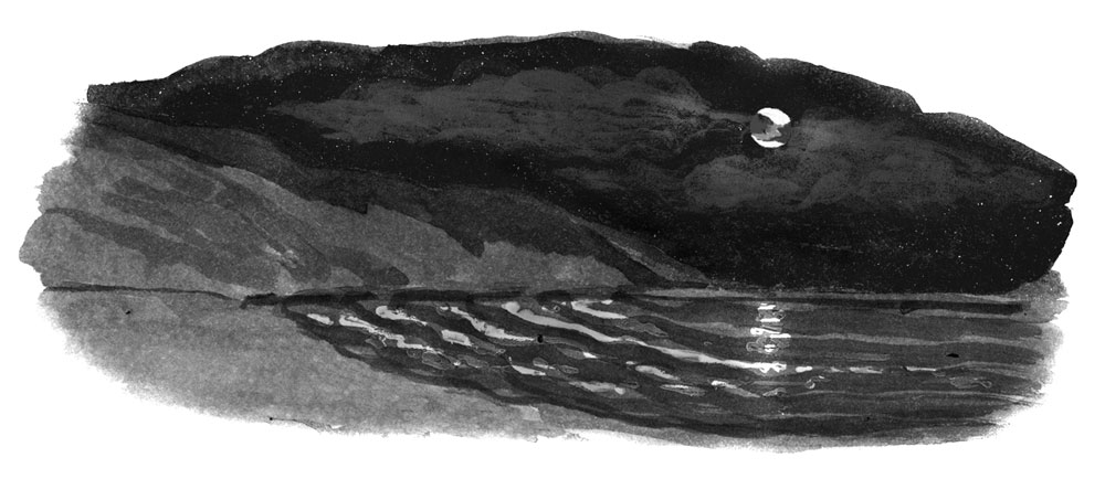 Через десять минут женщина была уже внизу, у самого моря. И здесь внизу была такая же тьма. Ветер здесь стал ещё злее, чем наверху. Дождь лил, и, казалось, конца ему не было.