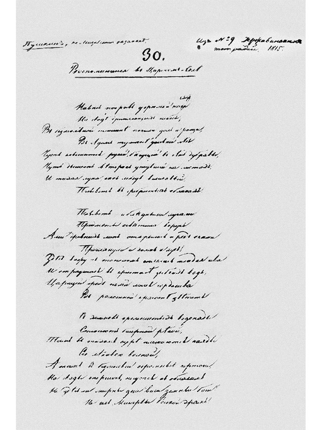 «Воспоминания в Царском селе». Автограф