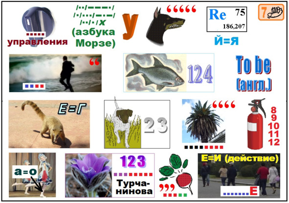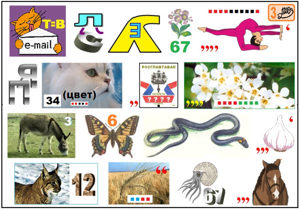4). Три варианта зачёркивания (букв и цифр) в знаках исключения (крест-накрест, диагональной линией и горизонтальной чертой) несут одинаковый смысл. А многовариантность зачёркивания призвана улучшить читаемость зачёркнутых знаков, особенно при уменьшении размеров, публикуемых ребусов до 2 раз.