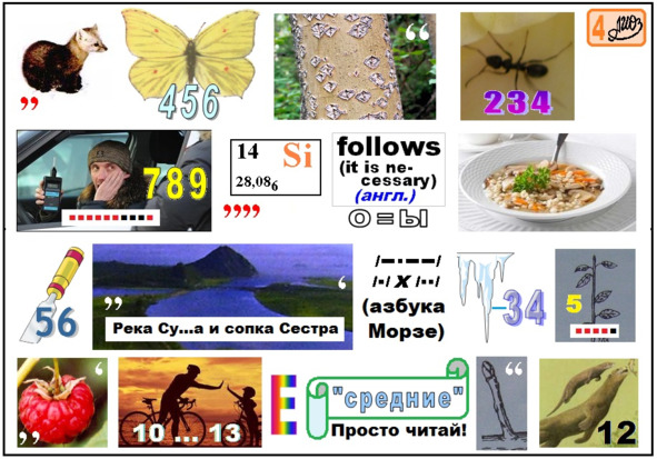РСП №4. Большинству растений нужны супесчаные и суглинистые («средние») почвы [соболь, крушинница (456), ствол (осины), муравей (234), алкотестер (789), кремний, нужно (о=ы), суп, стамеска (56), Сучана (река в Приморском крае), ые и (азб. Морзе), сосулька (34), побег (5), малина, велосипедисты (10 … 13), е, «средние», почка, выдра (12)] – (С.6).