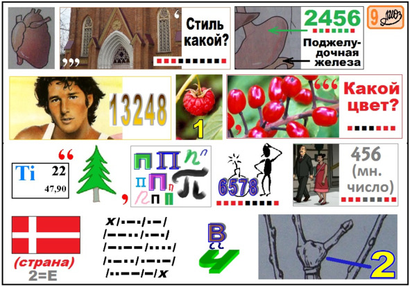 РСП №9. Органические удобрения растительного происхождения разрыхляют почву [орган (сердце), готический, желудок (2456), Бернштейн (13248) (й=и), я, красный, титан, ель, много «п», террорист (6578), прохожие (456), Дания (2=е), разрыхляют (азбука Морзе), по «ч» «в» (идёт), сумка (2)] – (С.18).