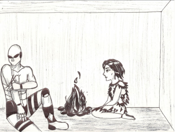 Темнело, пора было уже останавливаться на ночлег. Он не боялся ни холода, ни голода, ибо был роботом на солнечных батареях, но следуя программам самосохранения, он развел костер, чтобы отбиваться от тех зубастых косматых тварей, что преследовали его.