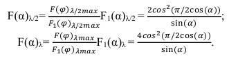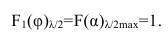 Максимальное значение F(α)λ/2max=1 при α=π/2.