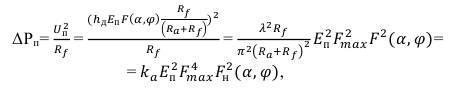 Мощность помех, принимаемых из верхней полусферы эквивалентной антенной (симметричным полуволновым вибратором в свободном пространстве), для которого Fн(φ)=1 и Fmax=1, будет вычисляться по формуле: