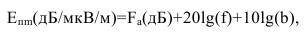 Определяем действующее значение напряженности поля промышленной и галактической помех Eпп и Eпg в точке приема по формуле: