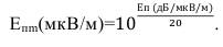 симметричного горизонтального диполя длиной λ/2 и переводим в (мкВ/м) по формуле (24).