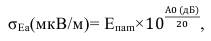 Поскольку напряжение помехи пропорционально напряженности поля в точке приема, то по аналогичной формуле можно определять превышение напряженности поля атмосферной помехи в точке приема относительно медианного значения: