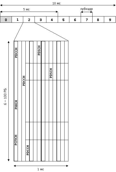 Остальную часть субкадра вниз занимает канал PDSCH, где размещают пакеты (блоки) трафика, вызовы абонентов (пейджинг), ответы eNB на запросы мобильных терминалов на доступ к сети, а также блоки системной информации SIB (System Information Blocks).