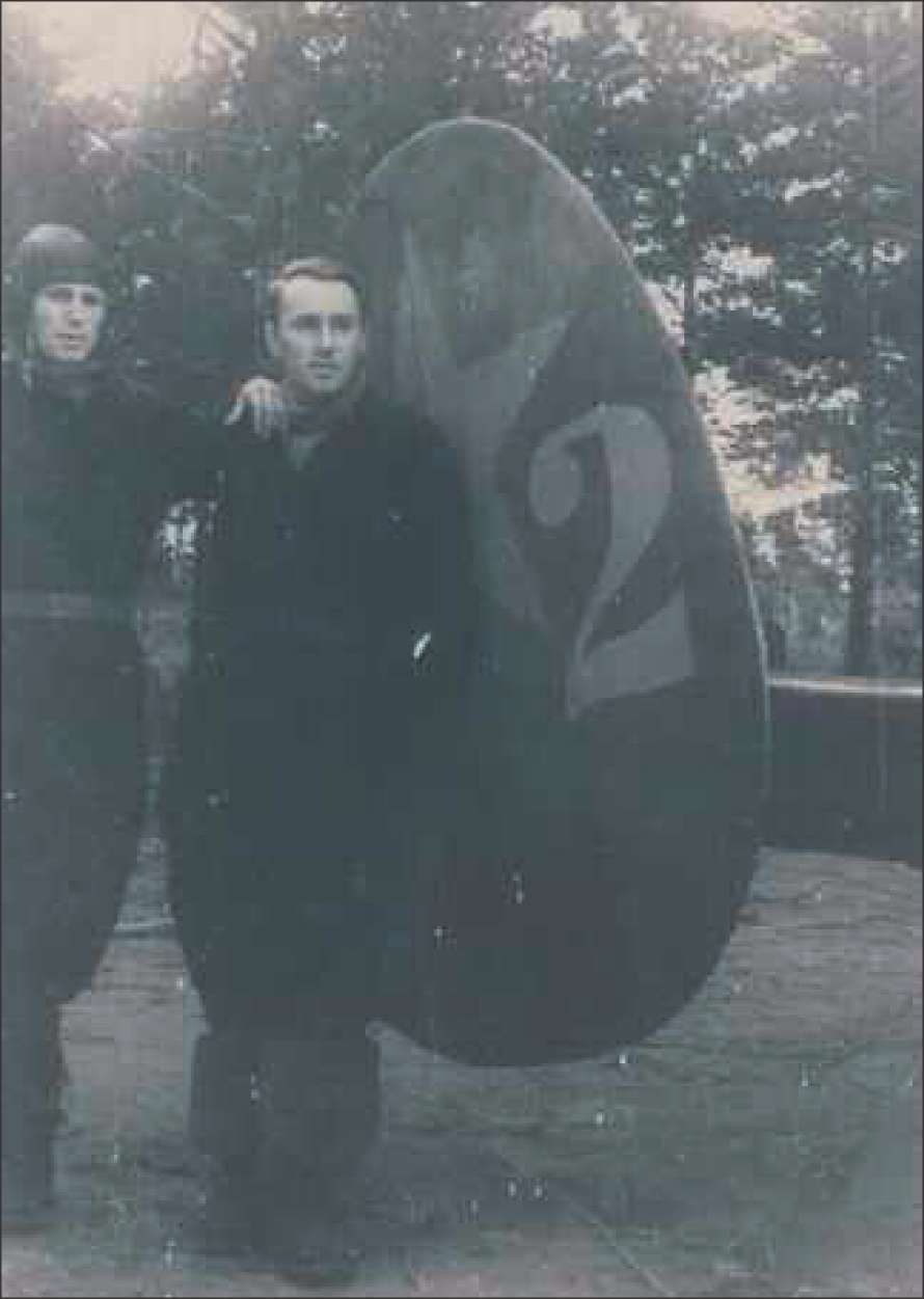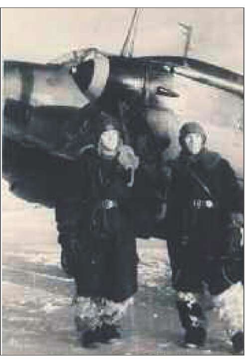 Е. Мелах и его штурман Яшук (справа) стали первыми в полку Героями Советского Союза. Они летали на моем первом самолете Пе-3.