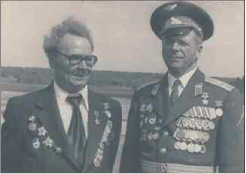 Герои Советского Союза Валентин Сугрин (справа) и Евгений Романов. Они летали на моем четвертом самолете (Шаталово на празднике Дня Победы).